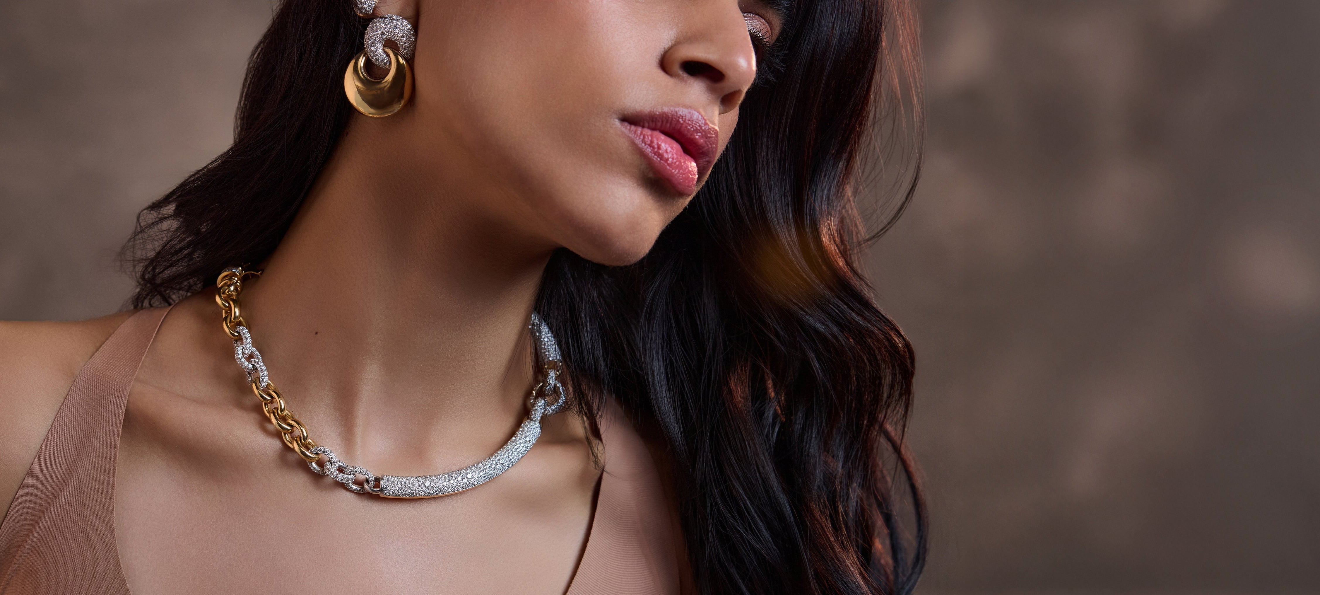 The Half & Half collection explores contrast as harmony — torque meets chain, bold meets fluid, structured meets undone. These convertible designs are a metaphor for duality: the seen and unseen, the masculine and the feminine, the sun and the moon.