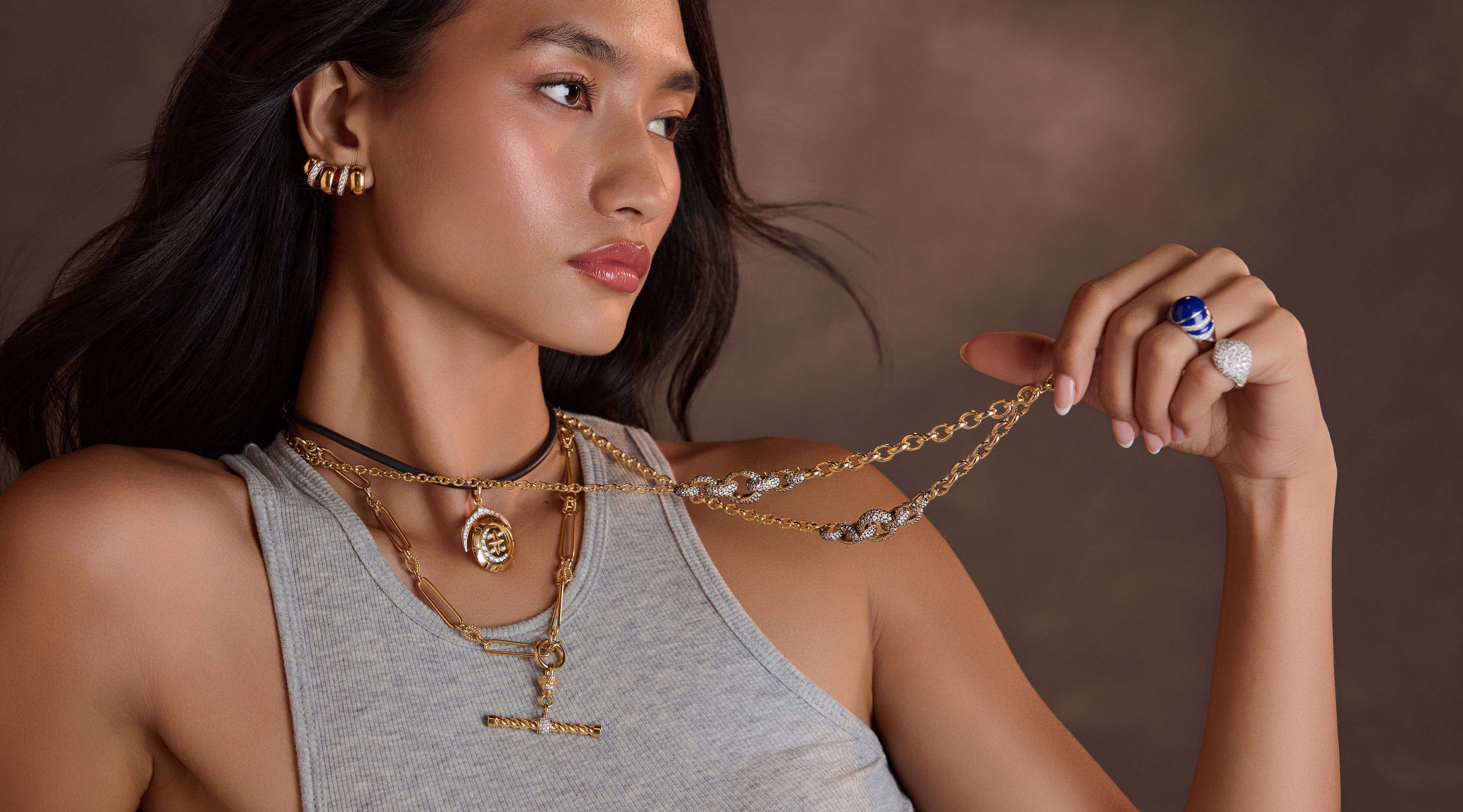 At the heart of our philosophy is a belief that fine jewellery should be functional, expressive, and instinctively wearable. We believe that true luxury should feel comfortable — that glamour is at its best when it moves with you, not when it asks you to adjust to it. Our designs are not tied to a place, season, or cultural code; they are shaped instead by the universal dualities that define us — softness and structure, grounding and expansion, the intimate and the iconic. This neutrality makes our pieces endlessly versatile and timeless.