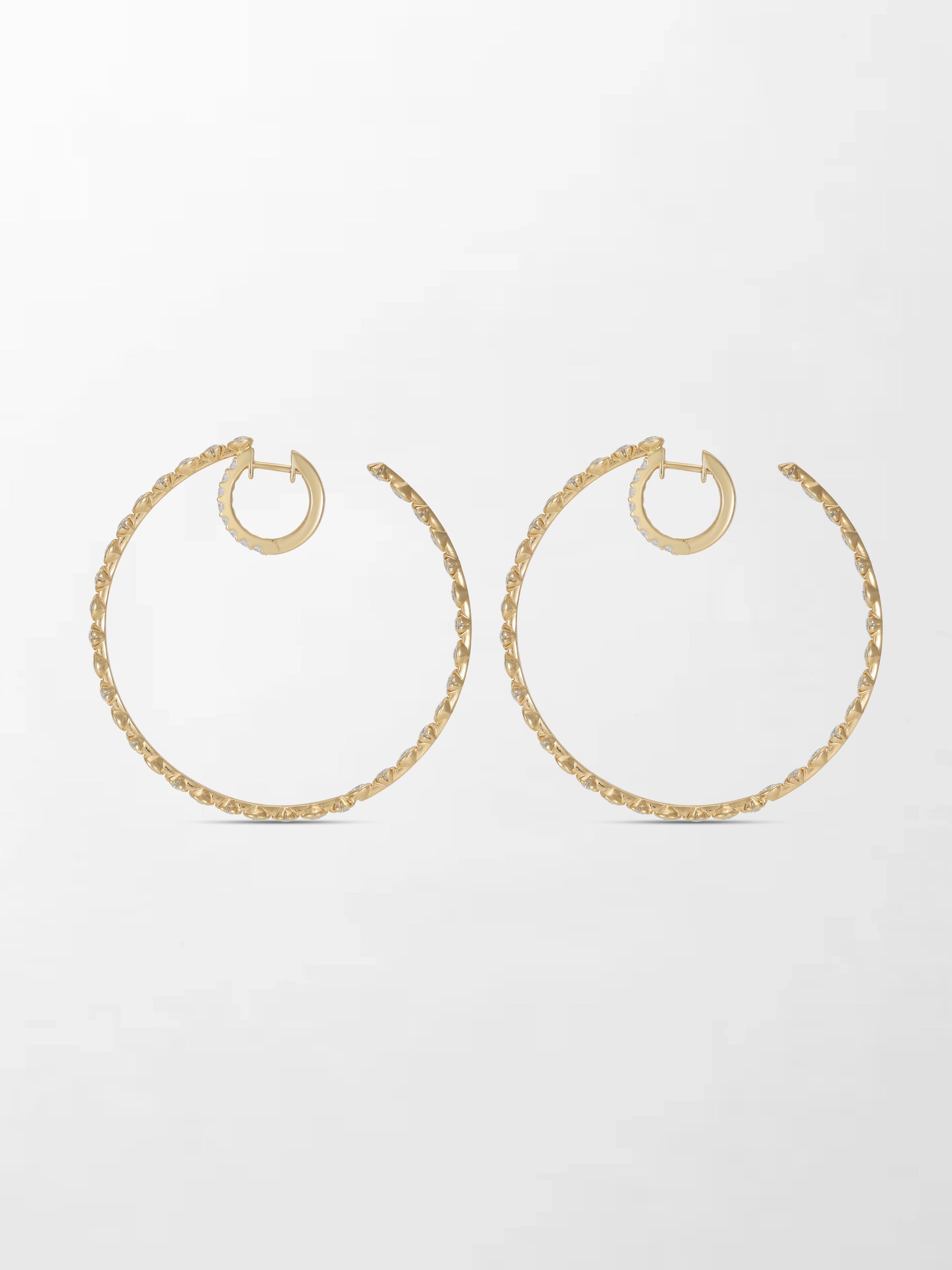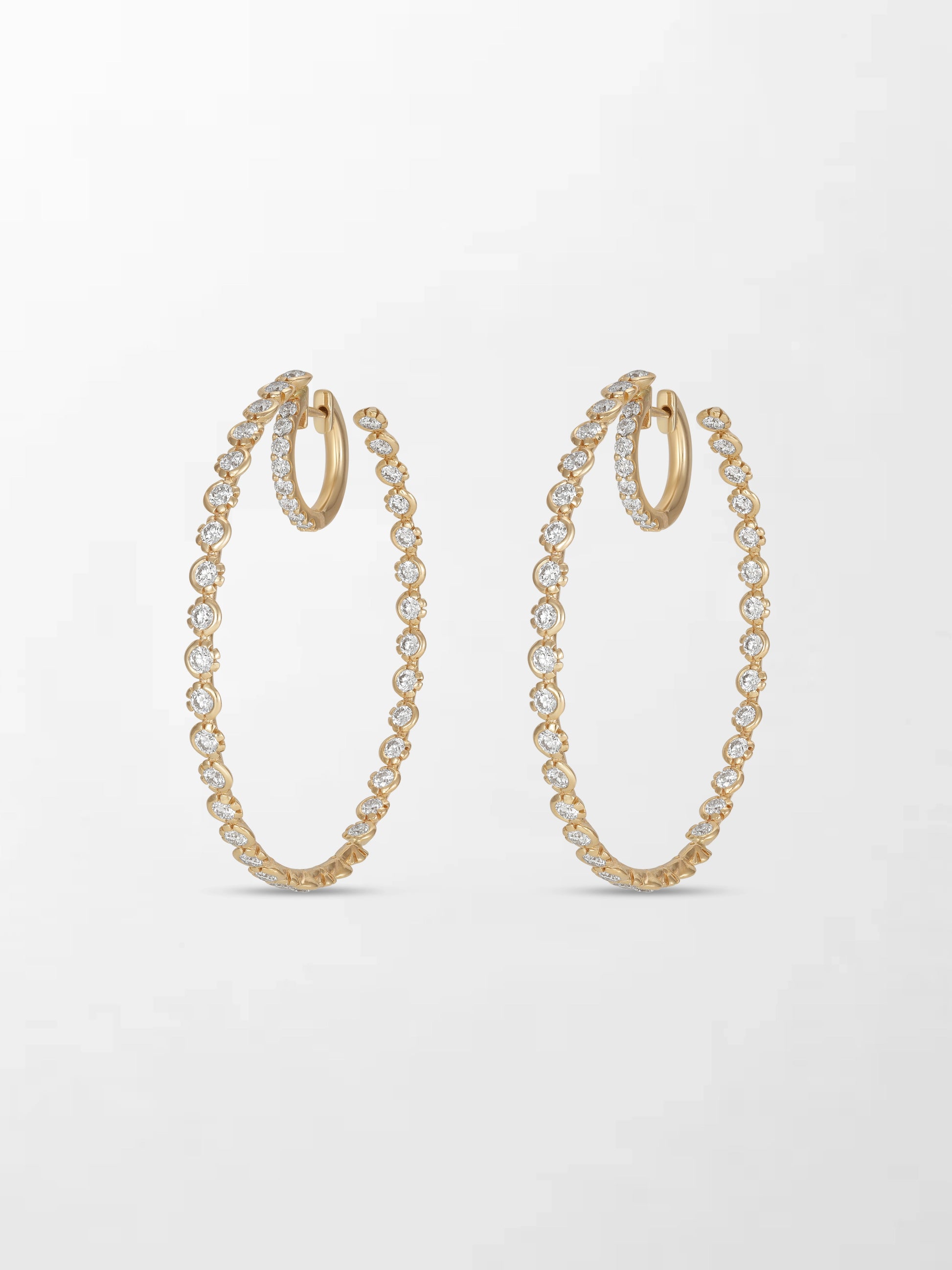 Double the hoops, double the attitude! Crafted in 14K yellow gold and set with 88 natural diamonds, these hoops redefine bold.
