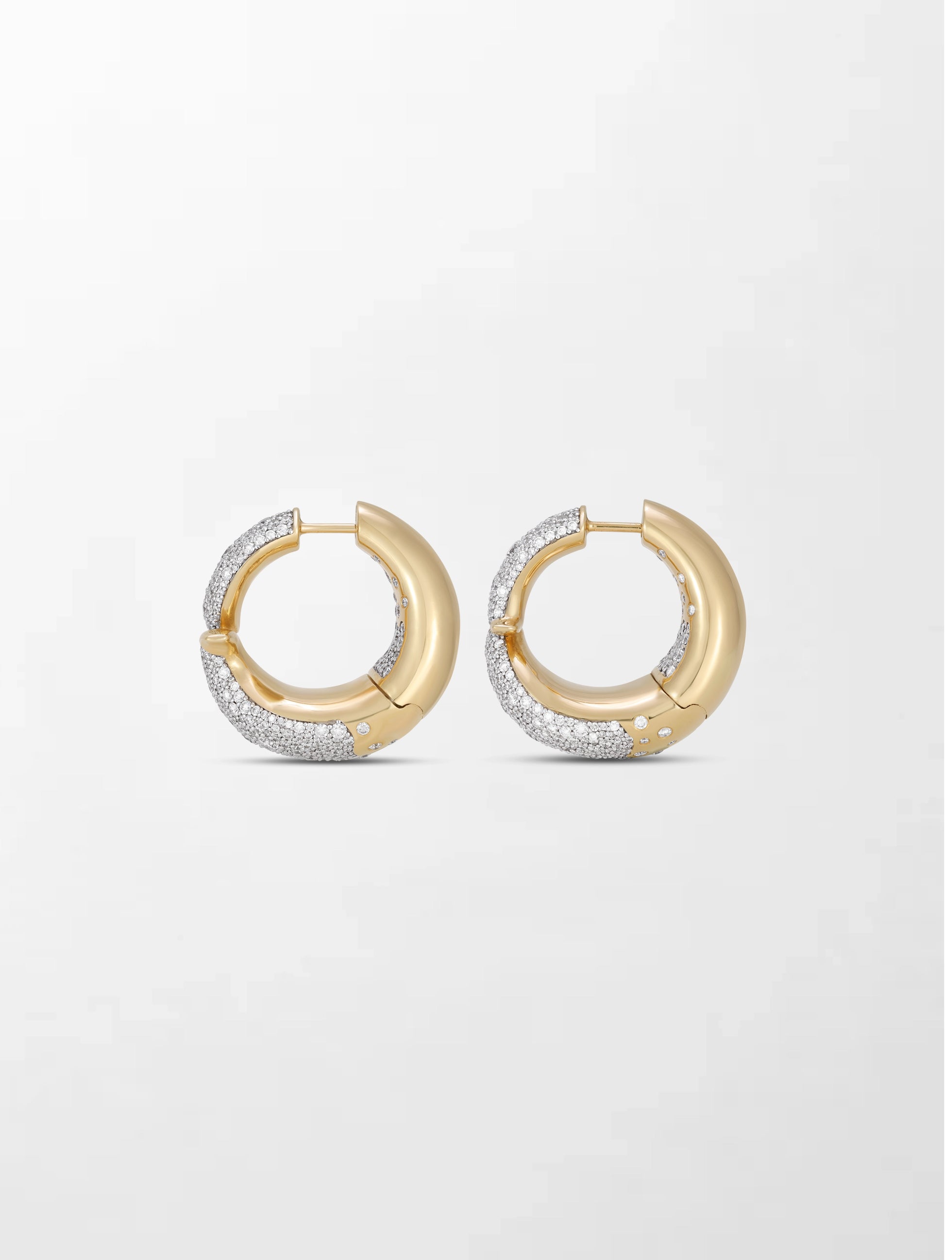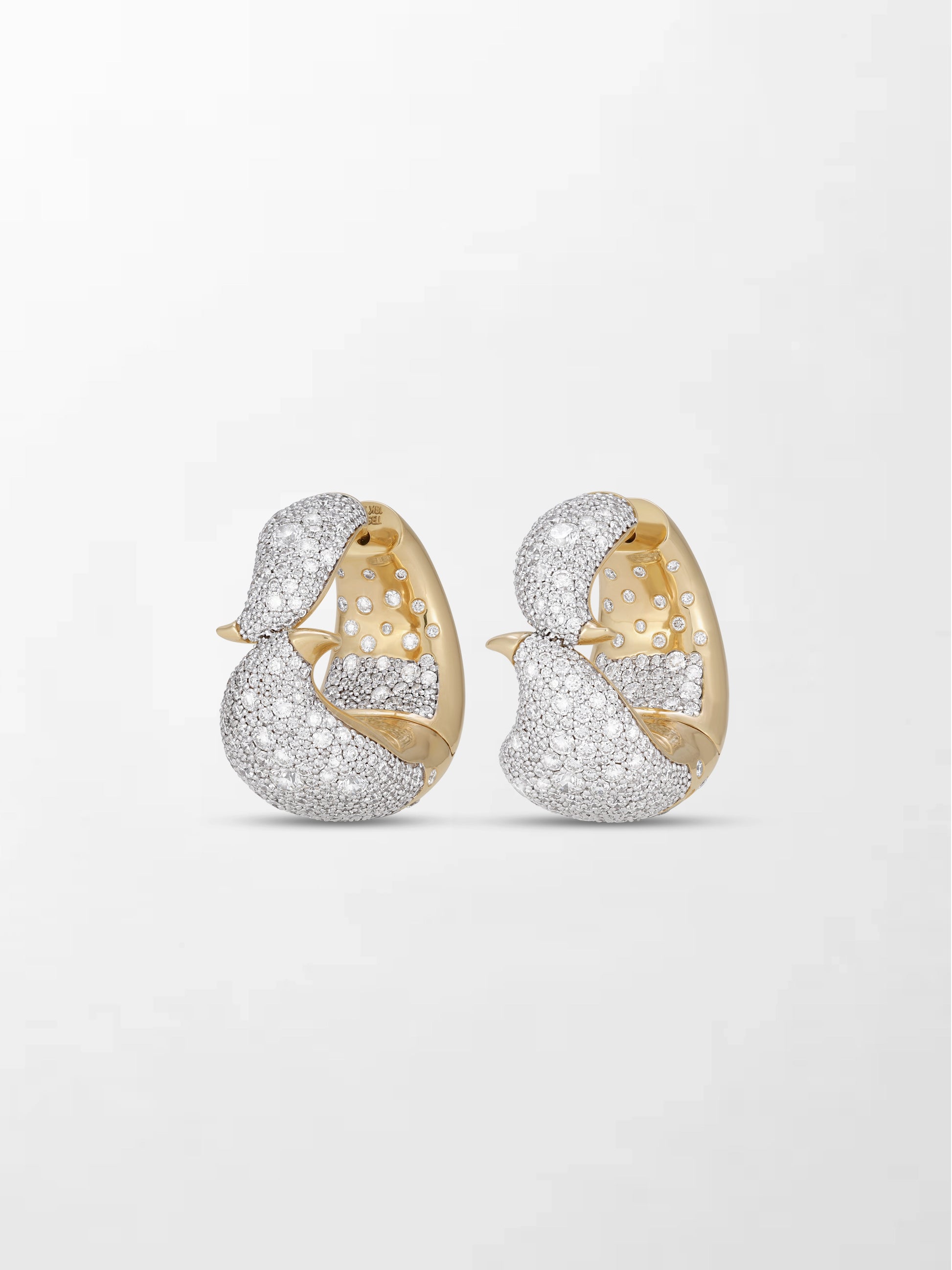 Premium flick earrings featuring 710 round diamonds in 18K yellow gold.