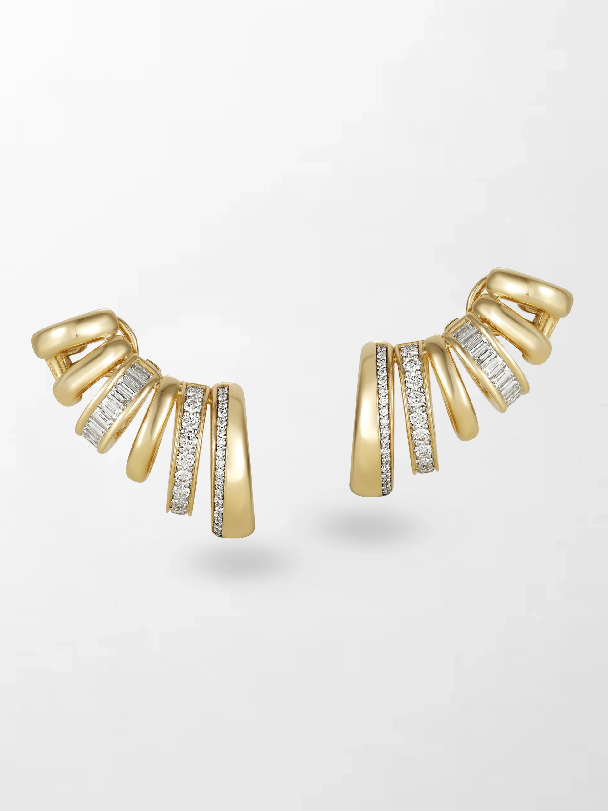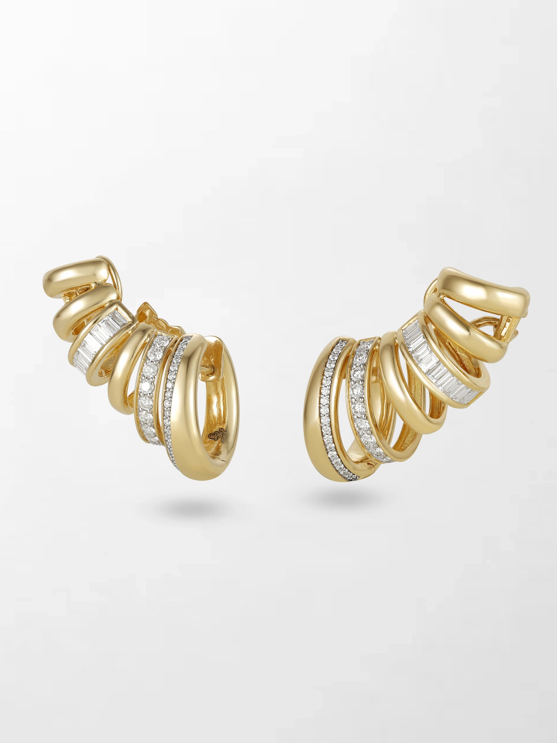 Designed to ascend the ear not merely worn, but experienced. Crafted in 14K yellow gold, these striking climbers radiate refined brilliance with every turn.