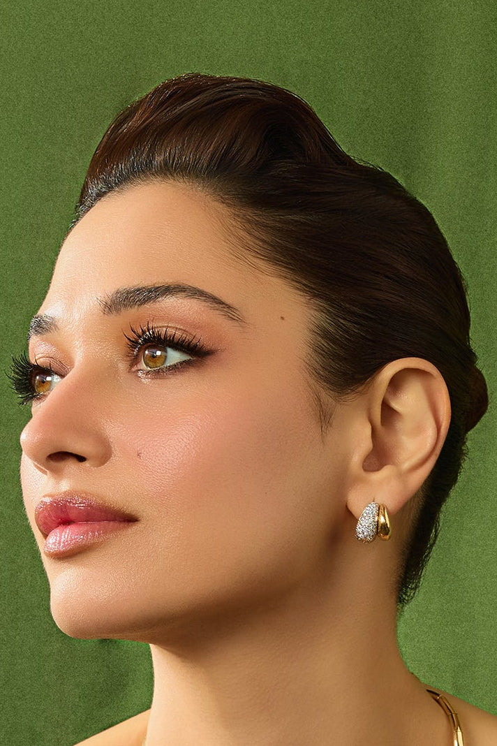 Elegant and contemporary, these 18K yellow gold huggies feature 138 round natural diamonds set in a drop shaped pavé design, creating a refined, sculptural look that elevates everyday sophistication.