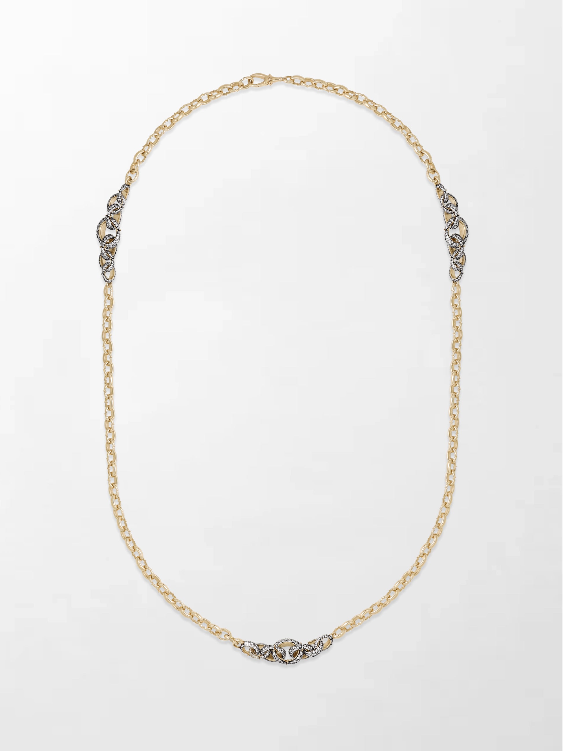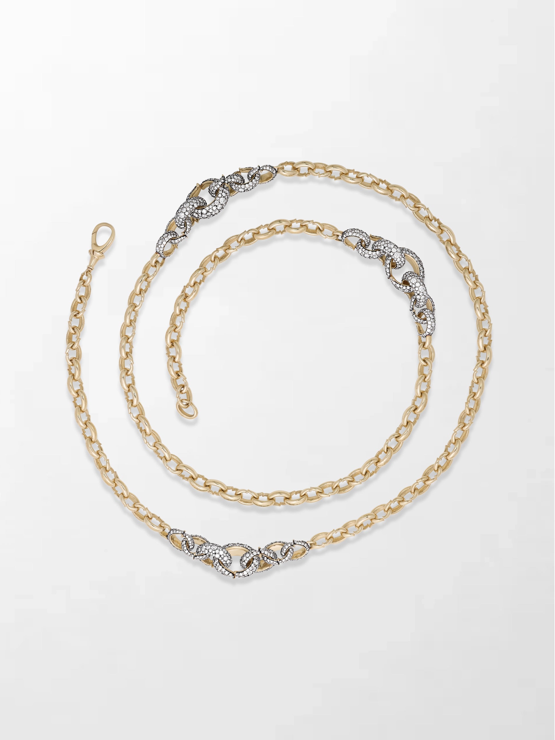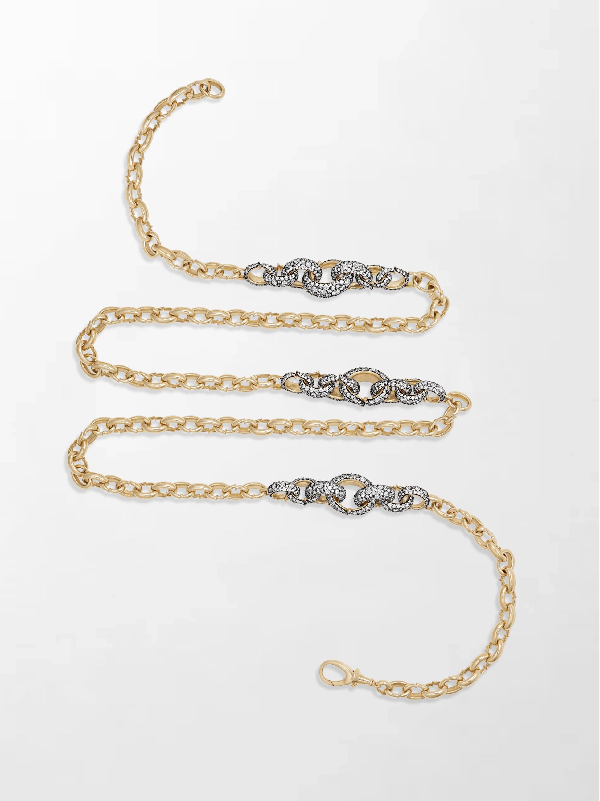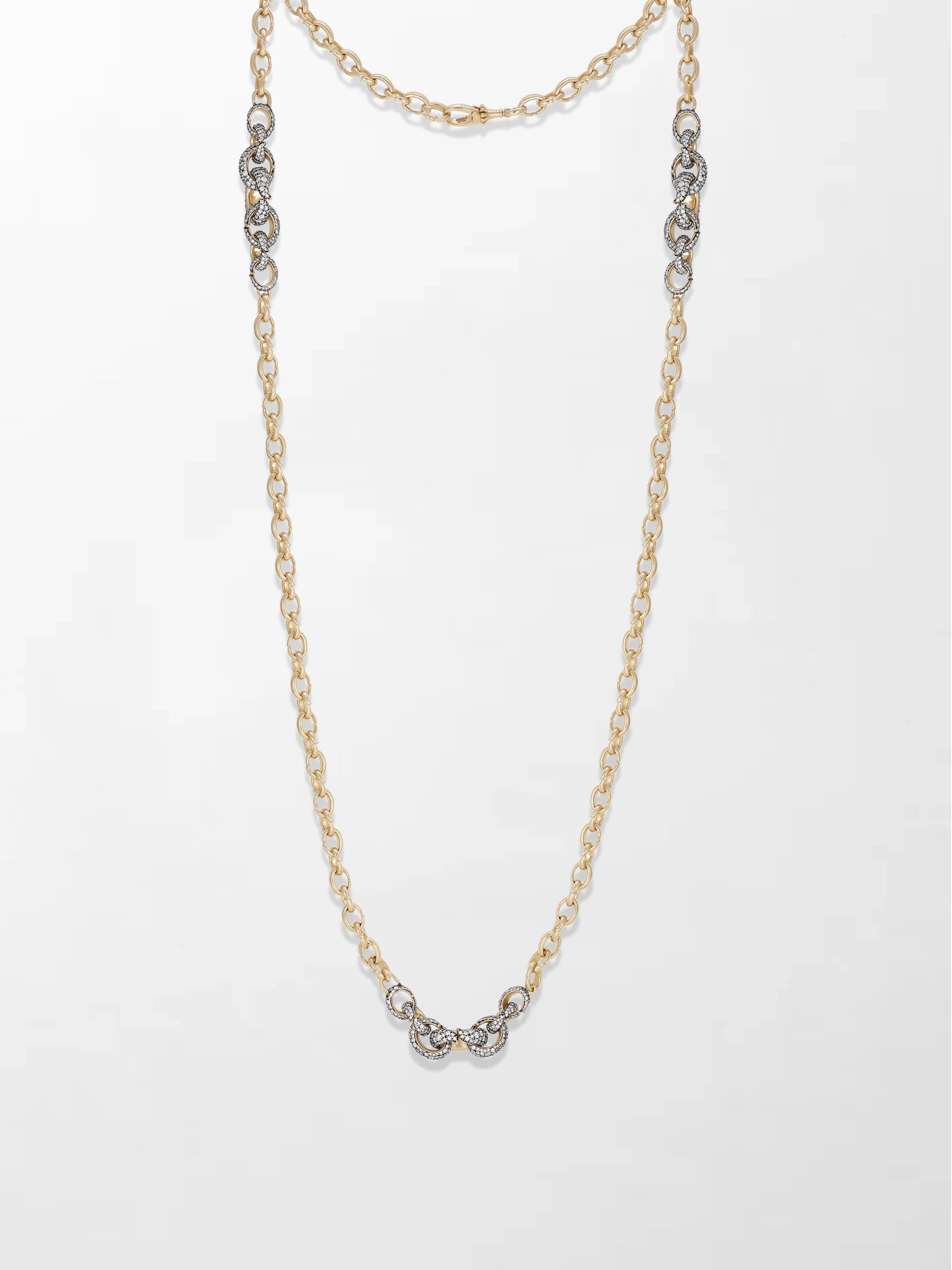 The Flick Chain is a 34 inch multiway styling chain with 2081 round natural diamonds. Its signature Flick-designed links, some sparkling with diamonds and finished in black rhodium, create a mesmerizing shimmer. With a seamless locking system and endless styling options, it’s one of Tamannaah’s favorites.