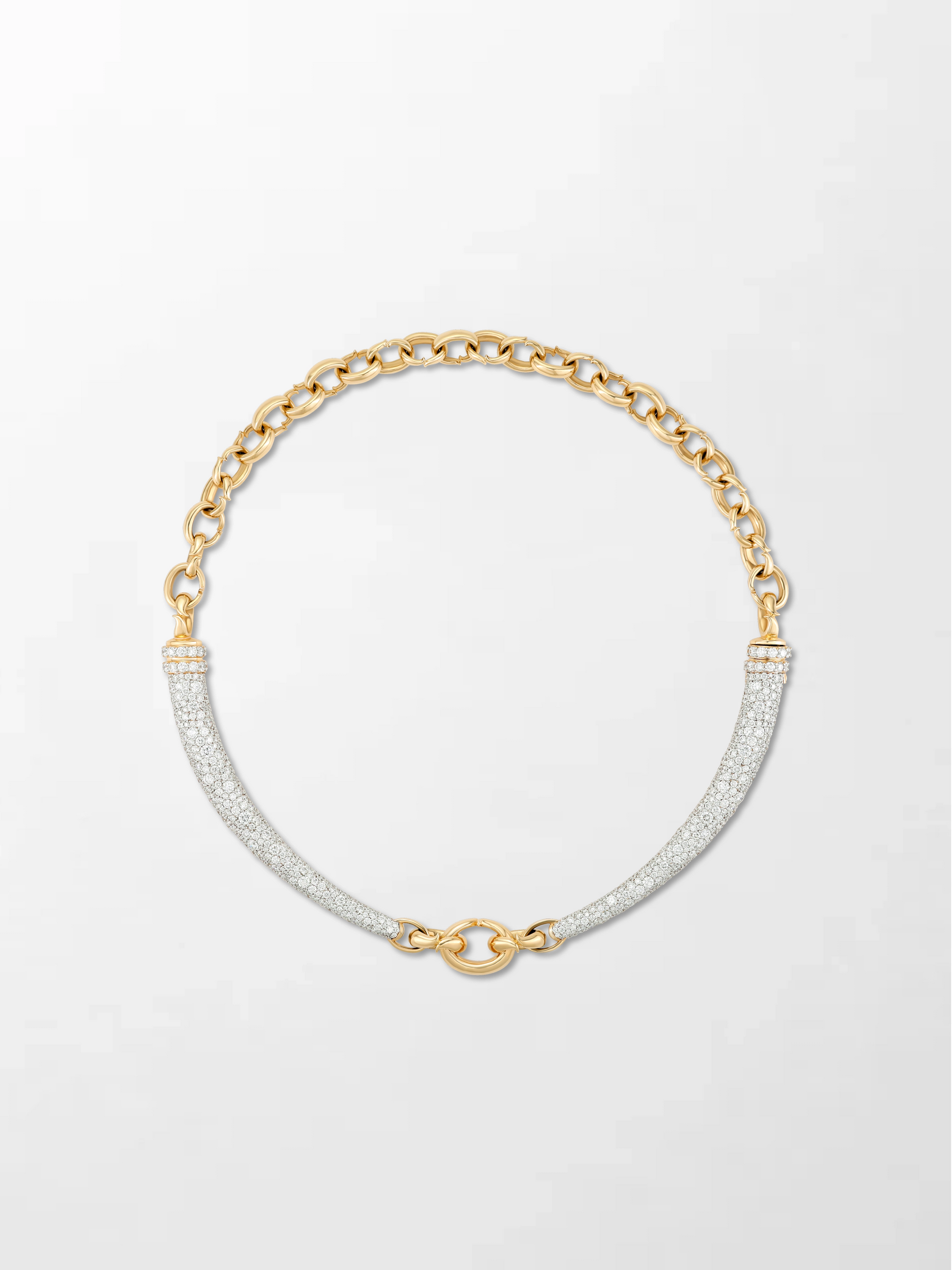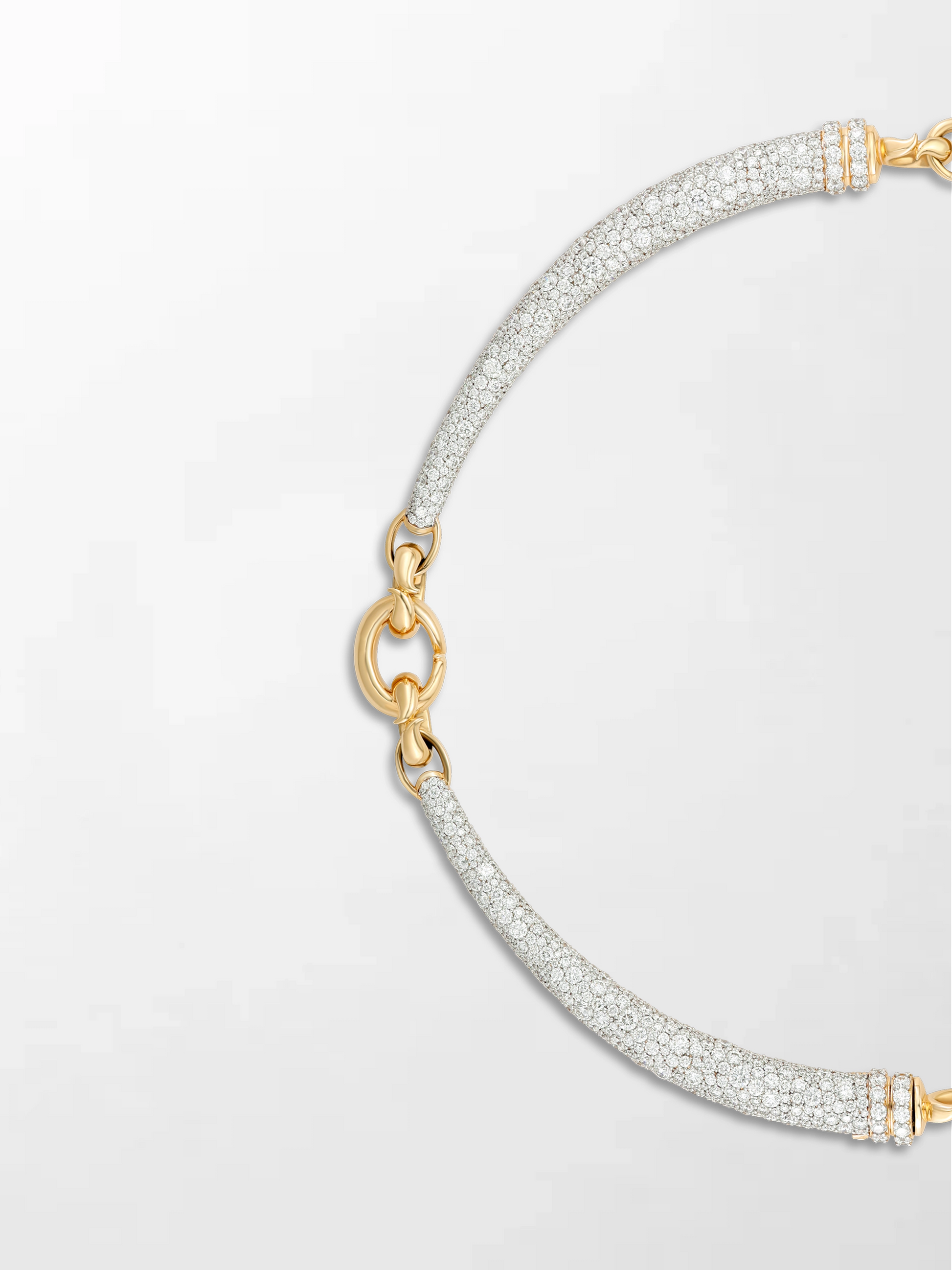 A statement of refined elegance, this 18K yellow gold torque features 656 round natural diamonds that taper toward the center, forming a sculptural, fluid design that exudes modern sophistication.