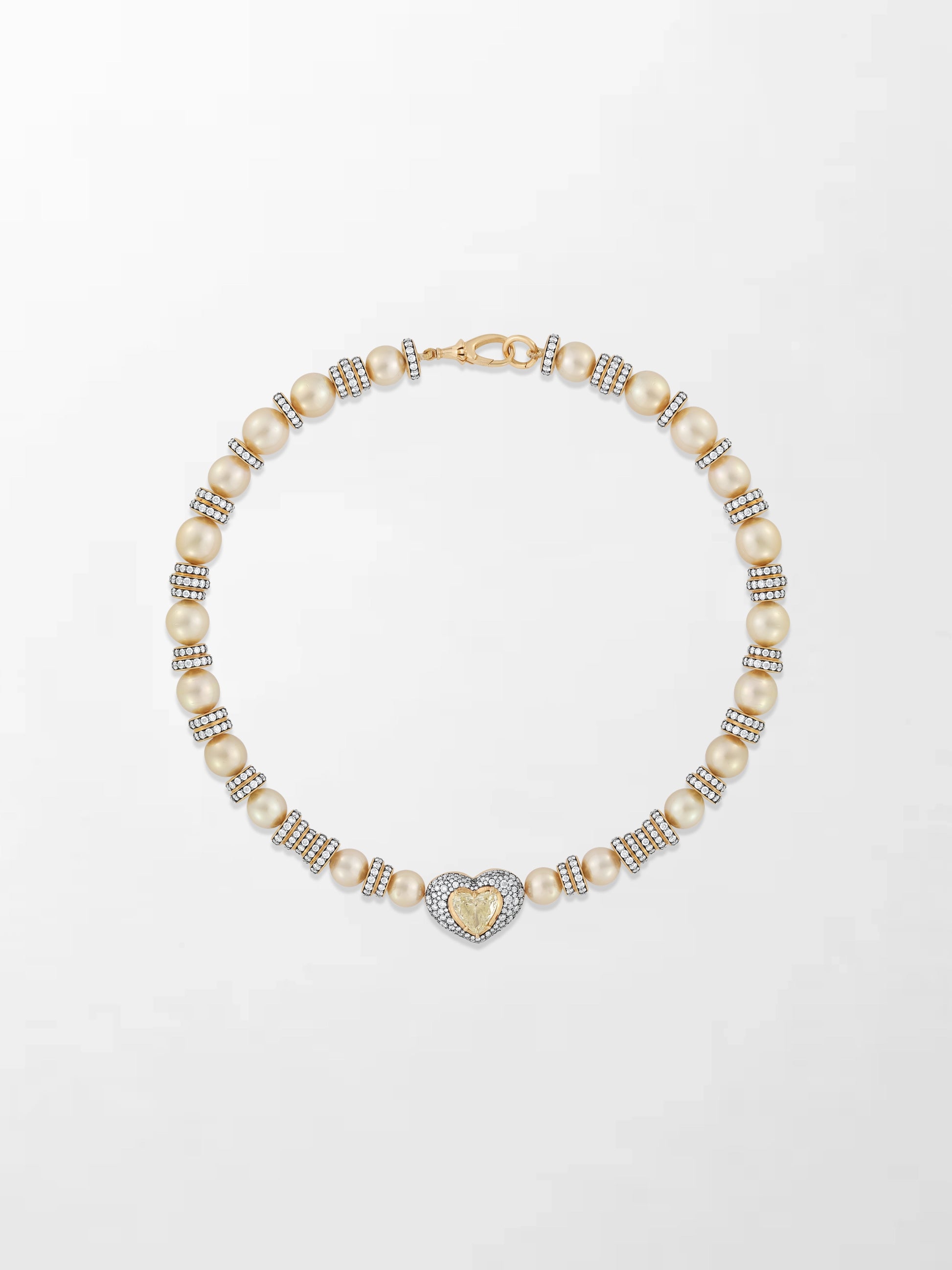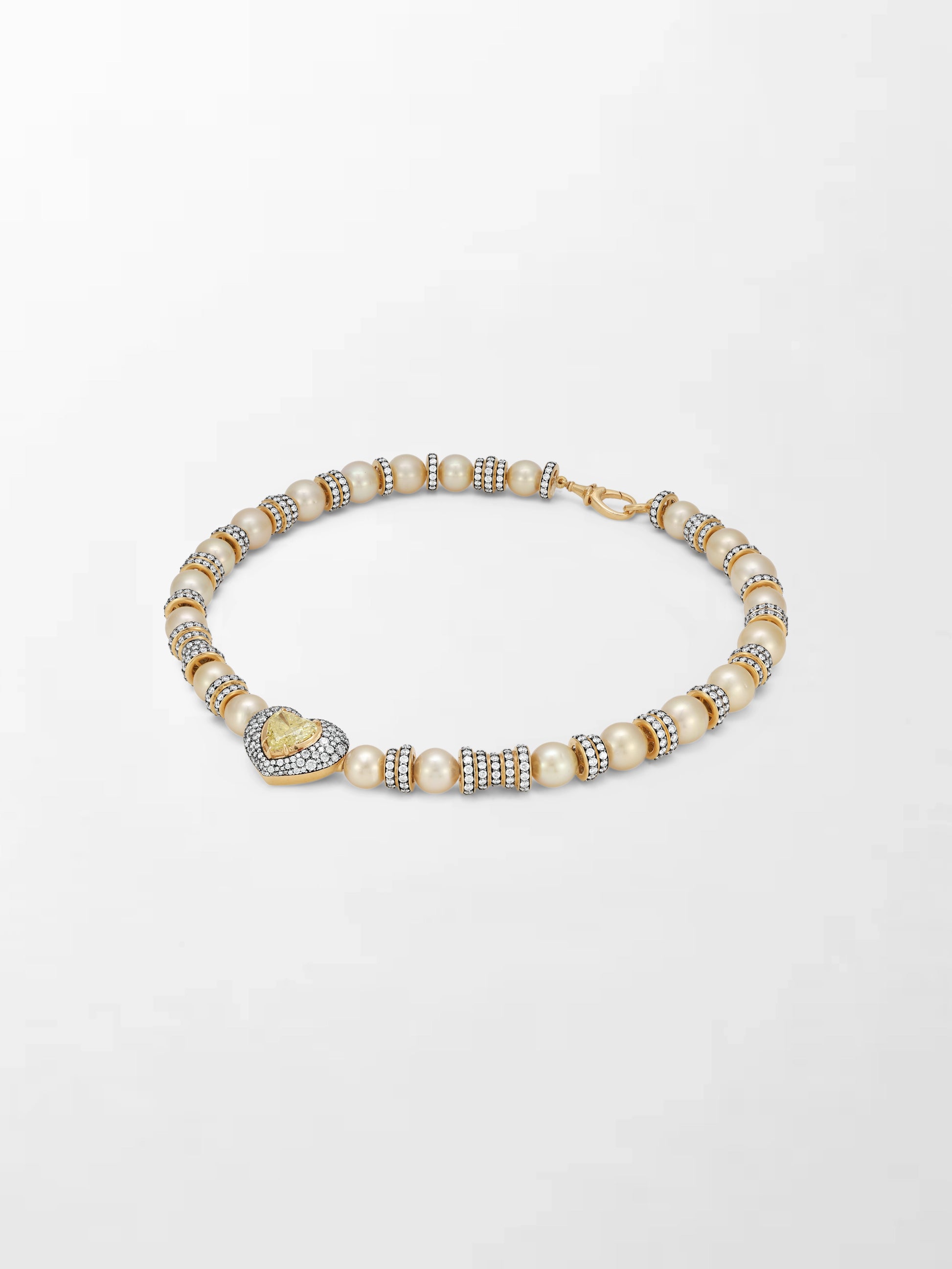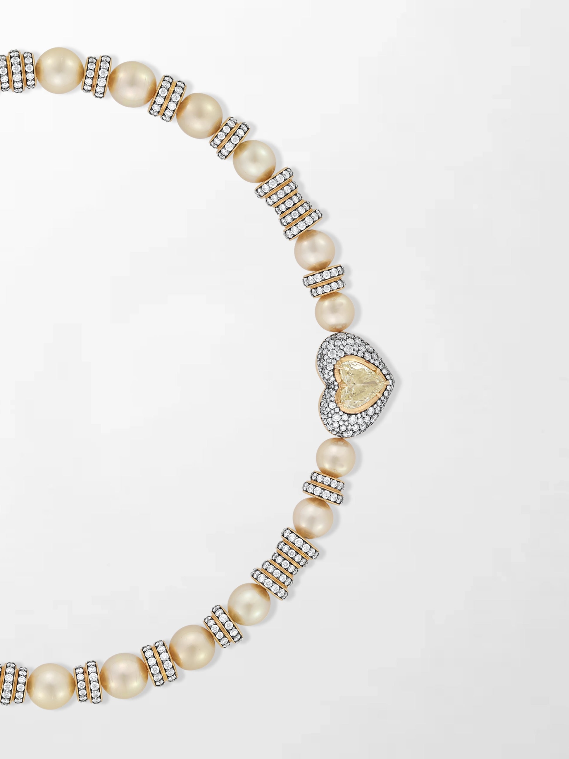 A cascade of 973 natural yellow diamonds meets 23 South Sea pearls in flowing 18K yellow gold. Seamless, versatile, and utterly unforgettable, this signature piece by Tamannaah transforms every look luxury that moves with you, a true one of a kind statement.