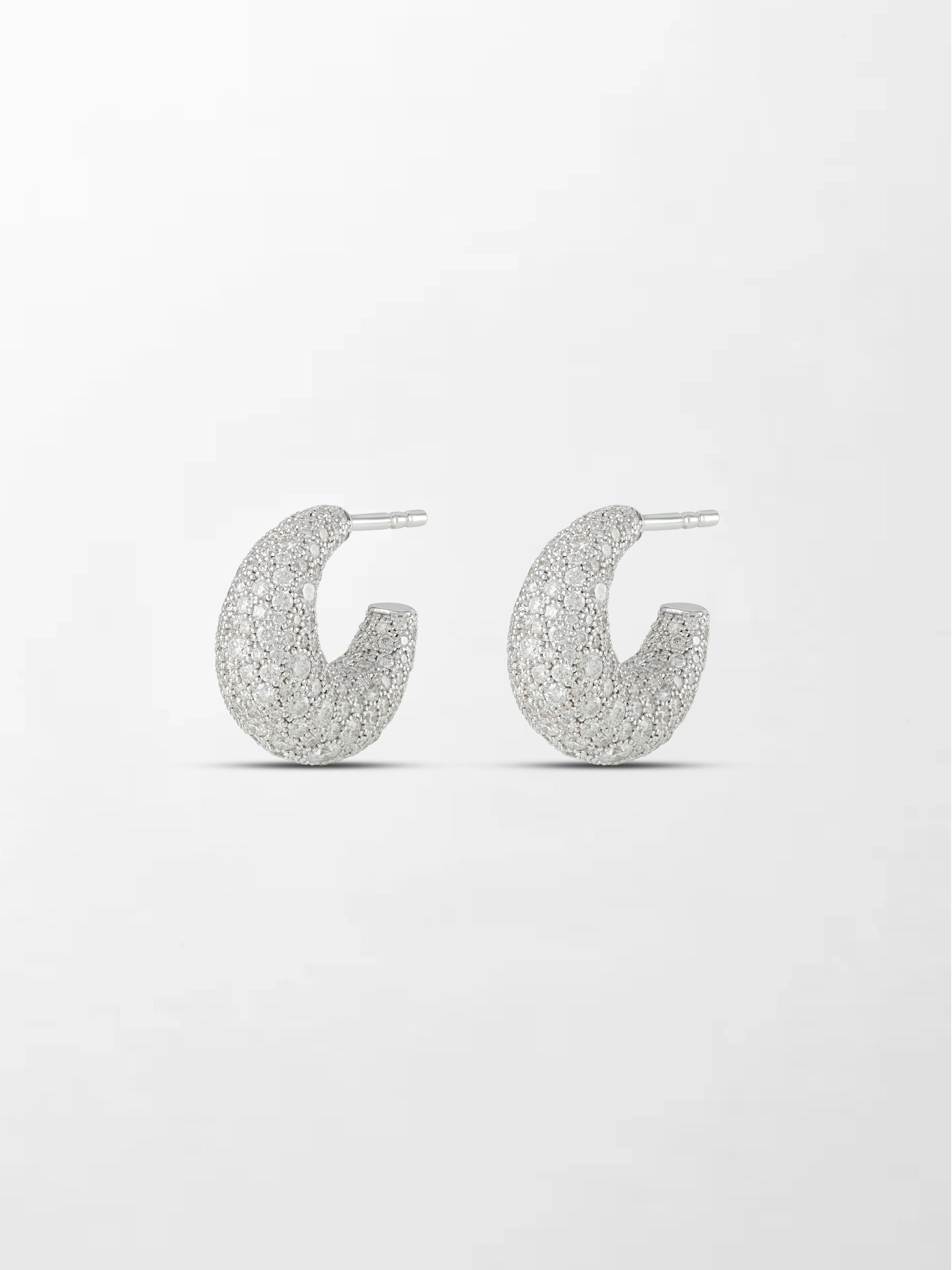 A smaller take on the signature design, crafted in 18K white gold and set with 531 round natural diamonds. It keeps the bold, sculptural look of the Plumptious Earring, now in a lighter, more wearable size.