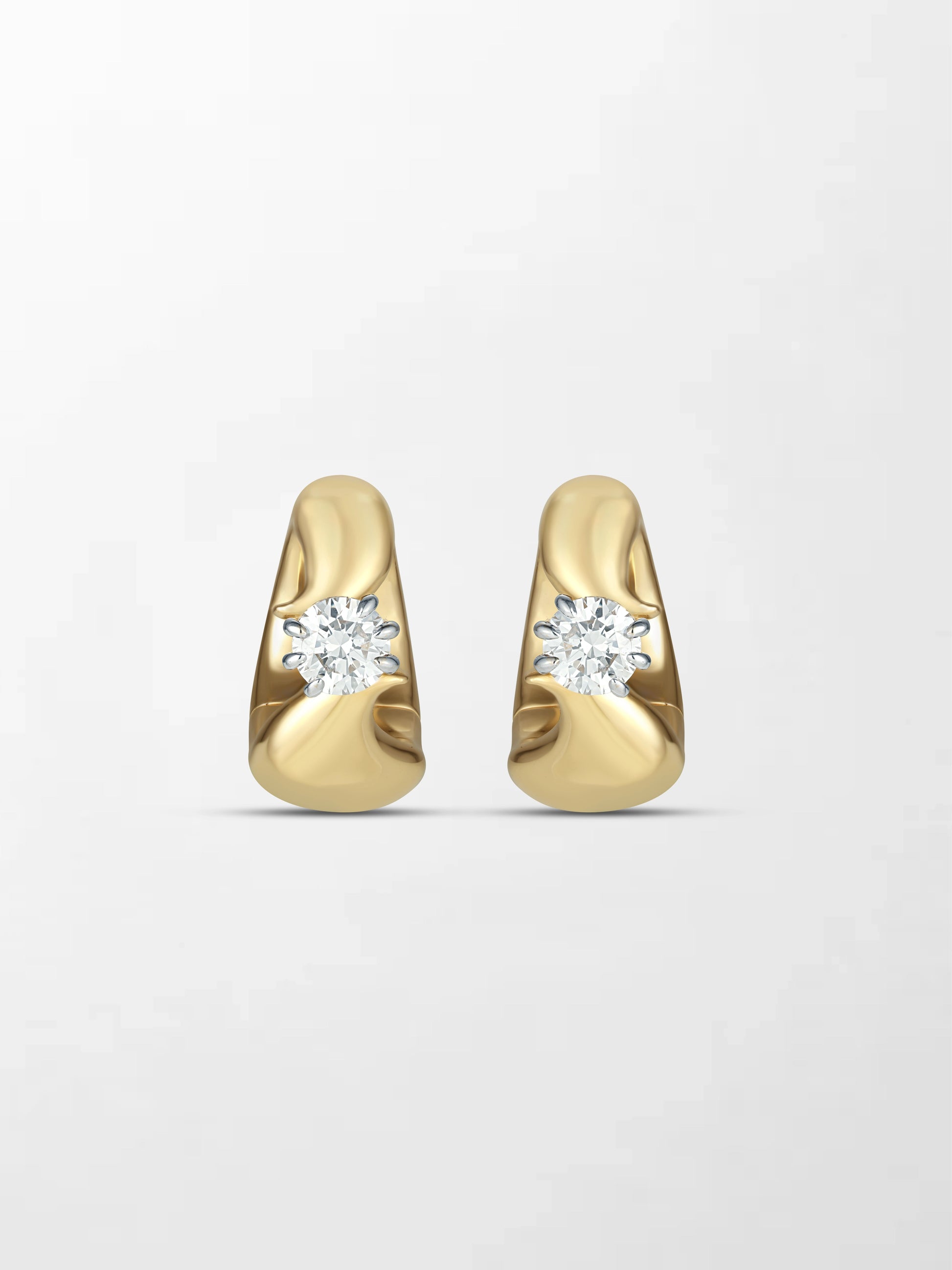 A single diamond takes the spotlight on each earring, set in sleek 18K yellow gold. Minimal, modern, and effortlessly elegant.