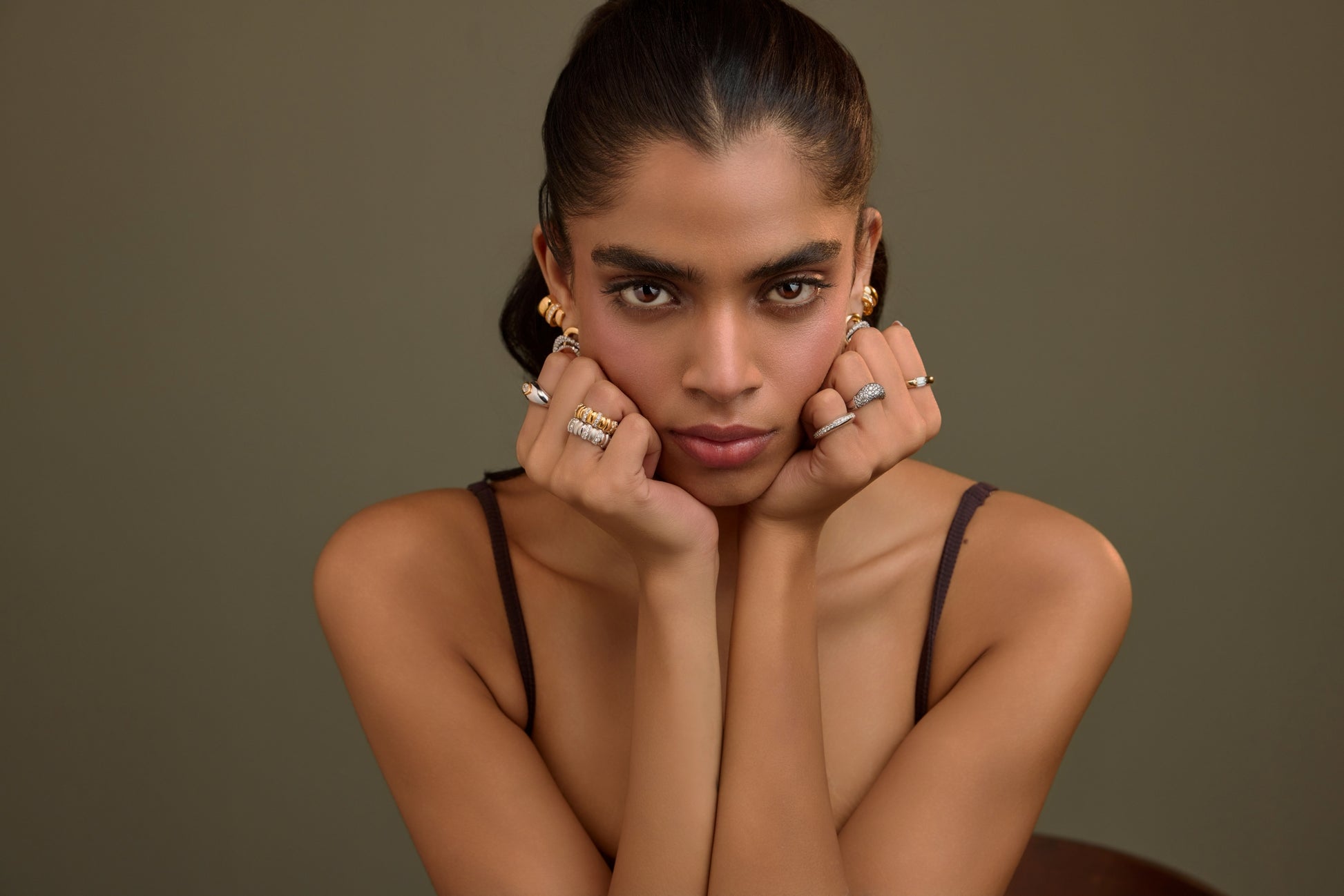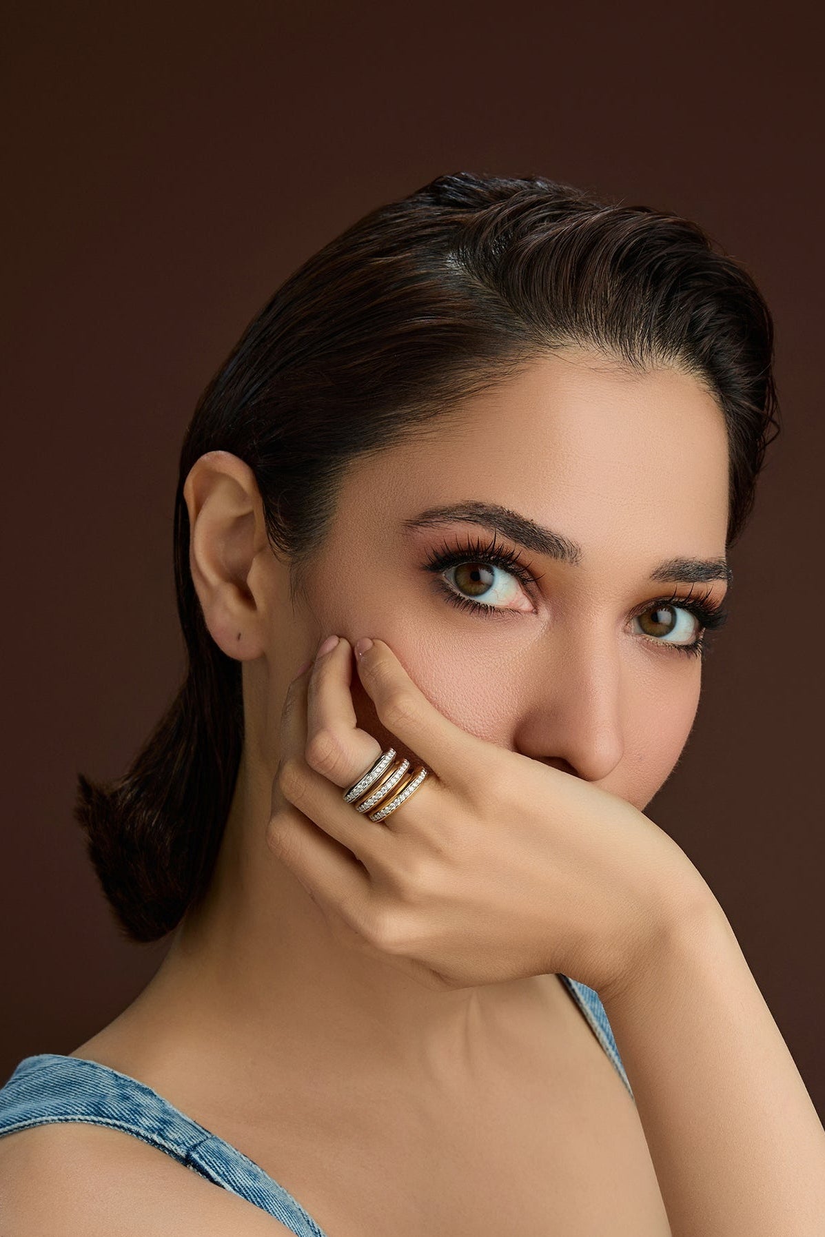 A line of 34 diamonds runs perfectly through the center, set in warm 18K yellow gold. Minimalist yet radiant, this band shines with quiet precision.