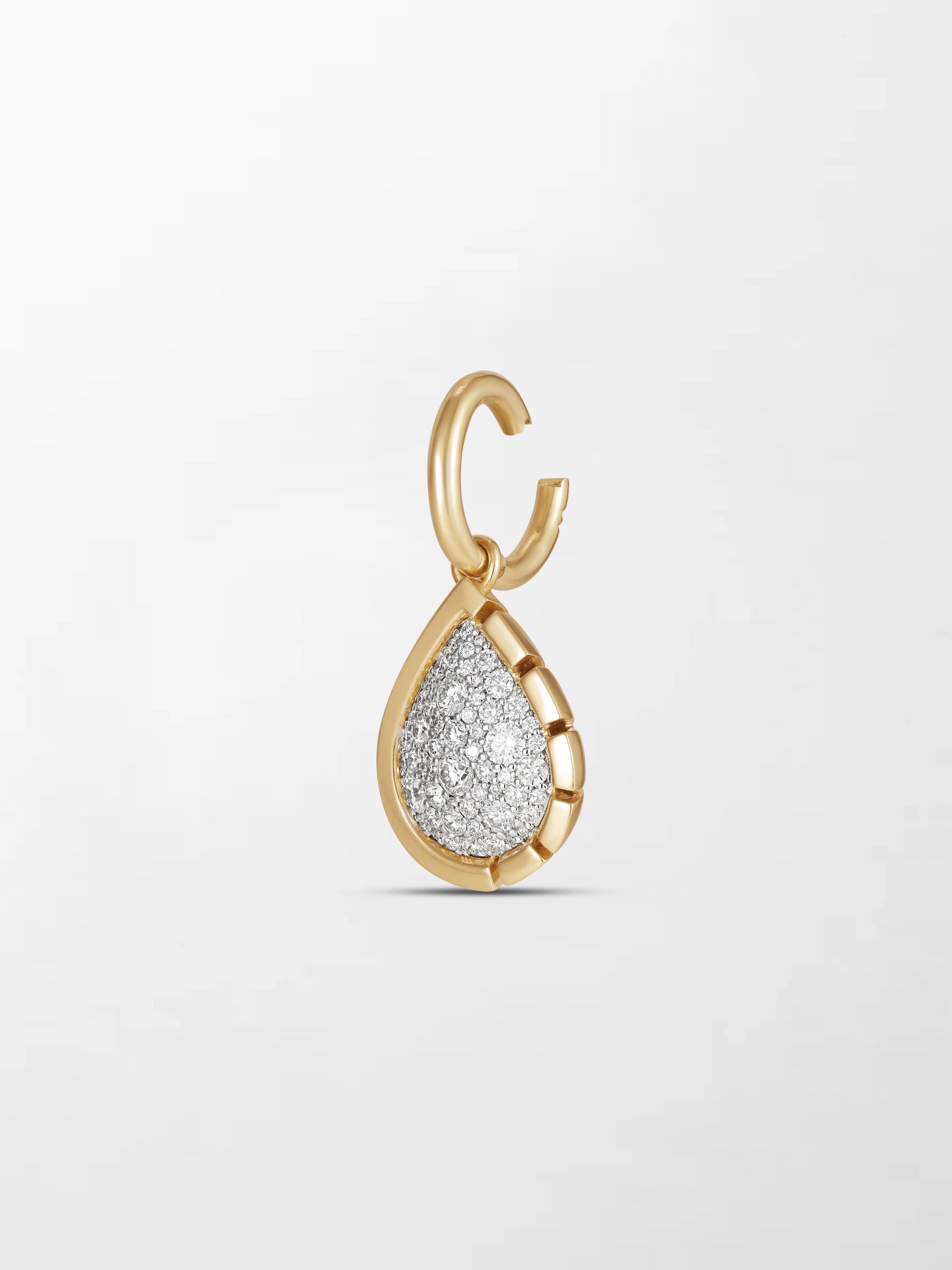 A timeless pendant which is soft, elegant. Crafted in 18K yellow gold, 59 round diamonds, each framed to catch and reflect light beautifully. With an openable loop, the pendant slips onto any chain for versatile styling.