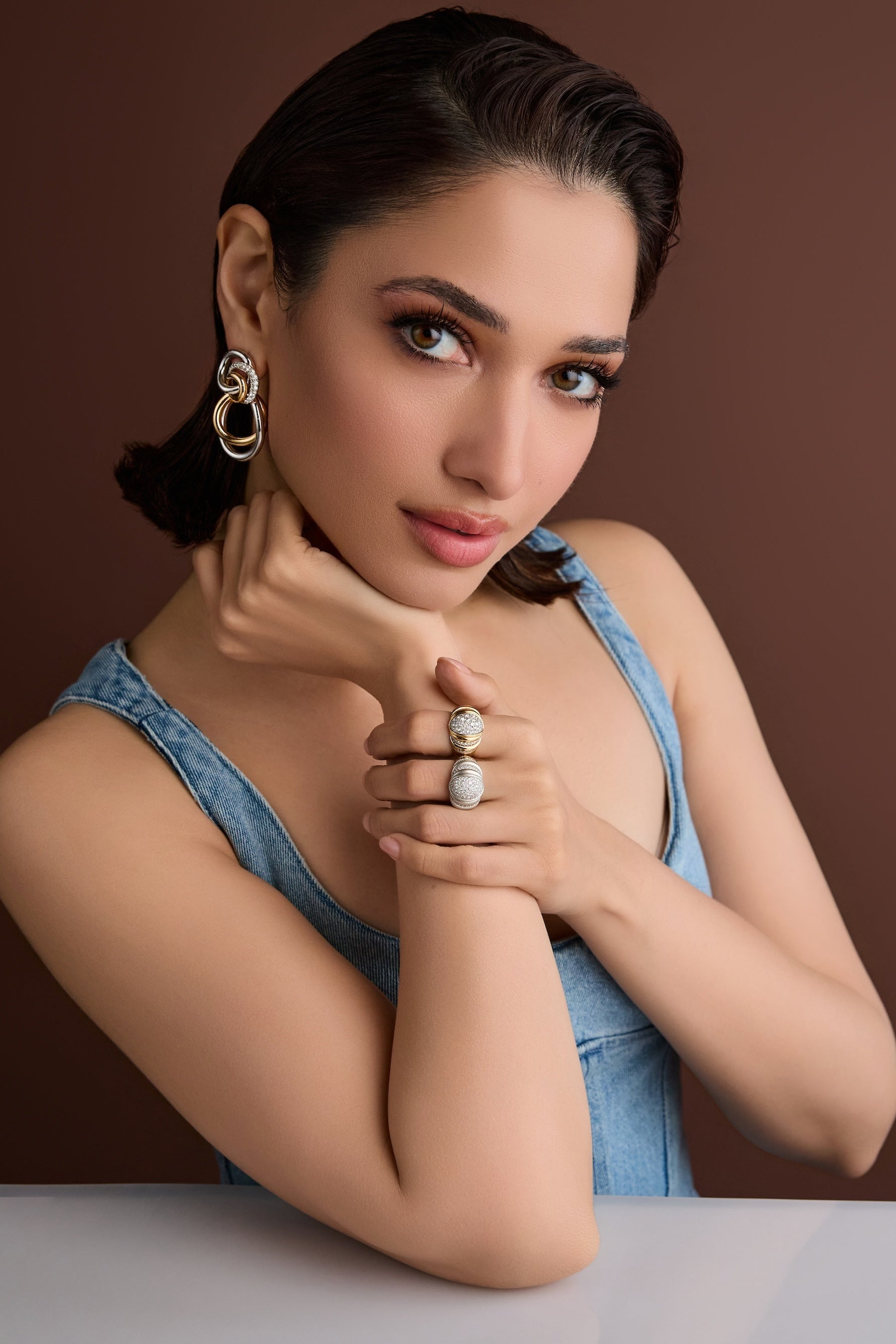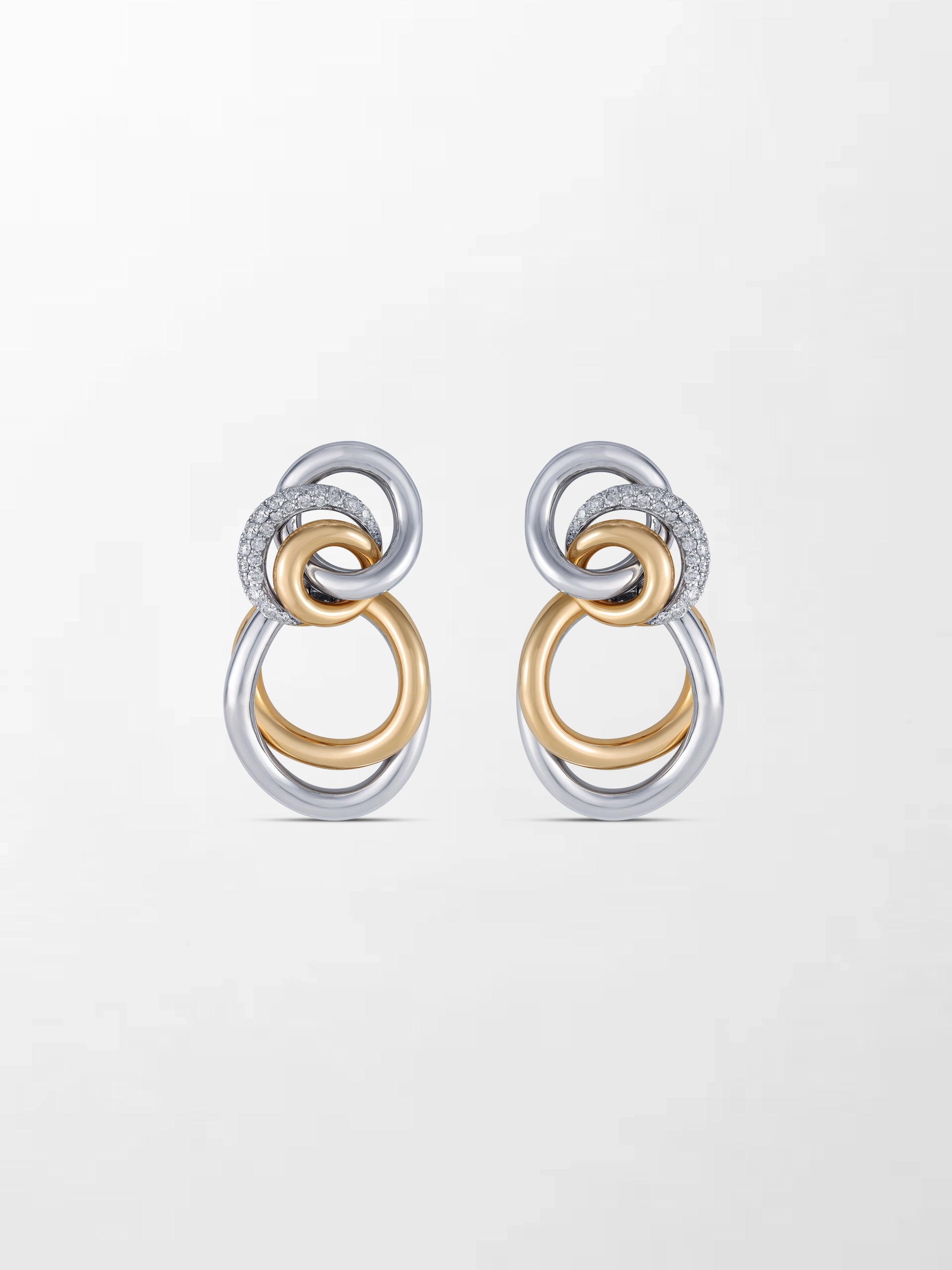 A dazzling statement in 18K yellow and white gold, the Trio Blaze Earrings feature 54 round brilliant-cut diamonds that sparkle from every angle.